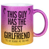 This guy has the best Girlfriend, Κούπα Χρυσή/Ροζ Glitter, κεραμική, 330ml