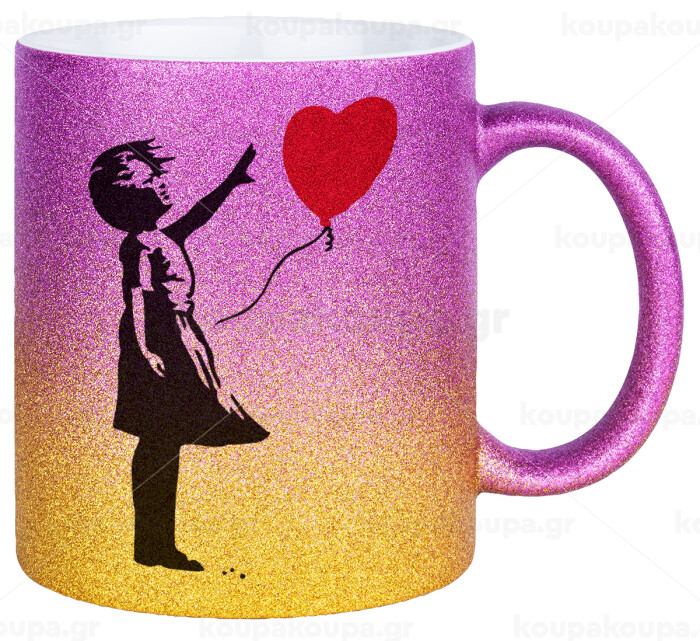 Banksy (Hope), Κούπα Χρυσή/Ροζ Glitter, κεραμική, 330ml
