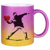 Banksy (The heart thrower), Κούπα Χρυσή/Ροζ Glitter, κεραμική, 330ml