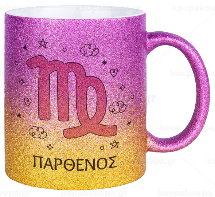 Ζώδια Παρθένος, Κούπα Χρυσή/Ροζ Glitter, κεραμική, 330ml