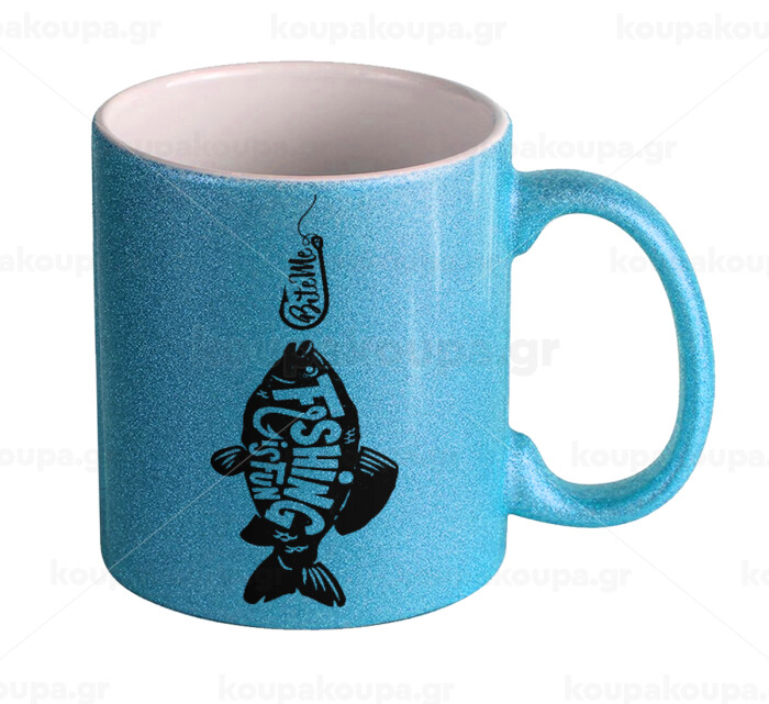 Fishing is fun, Κούπα Σιέλ Glitter που γυαλίζει, κεραμική, 330ml