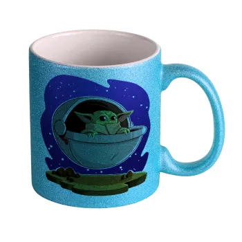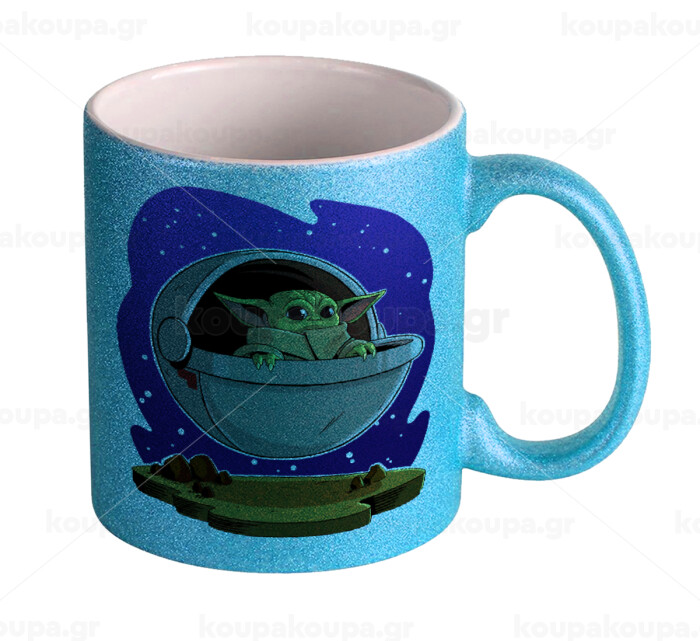 Baby Yoda mandalorian, Κούπα Σιέλ Glitter που γυαλίζει, κεραμική, 330ml
