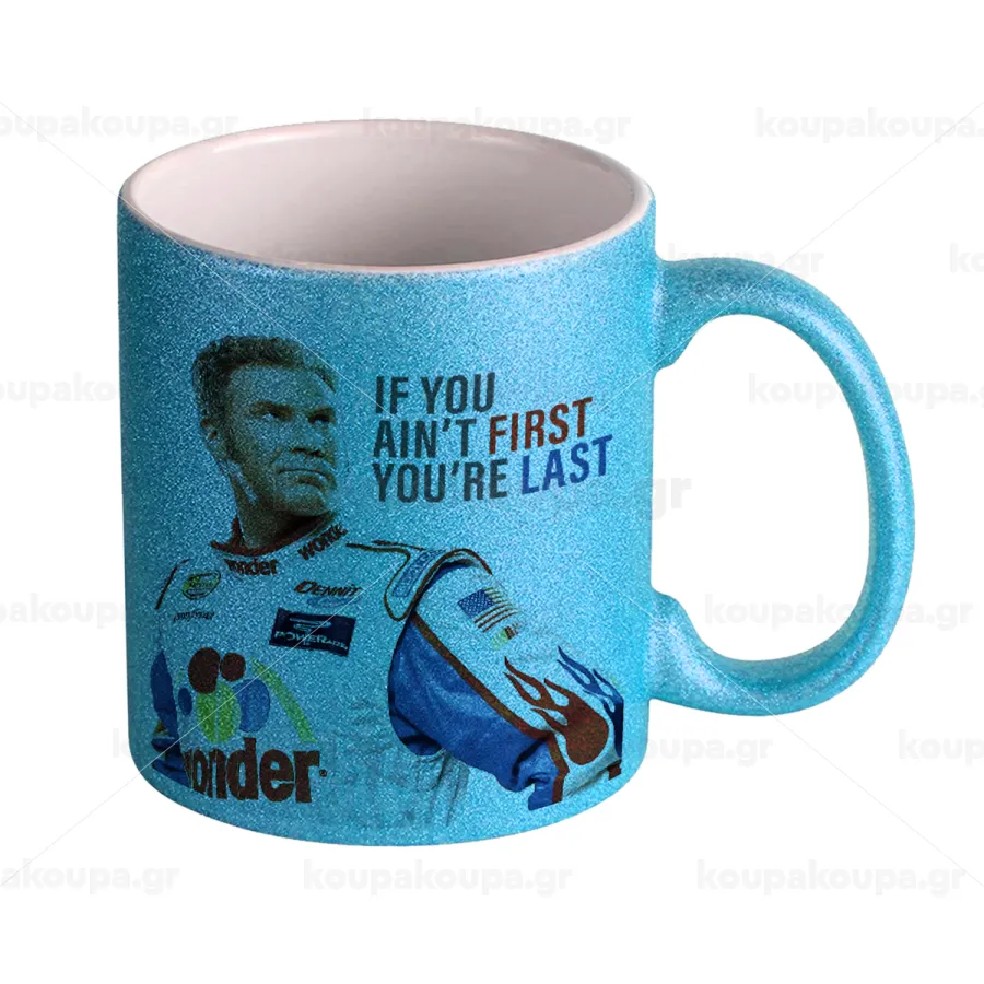 If You Ain't First You're Last Ricky Bobby, Talladega Nights, Κούπα Σιέλ Glitter που γυαλίζει, κεραμική, 330ml