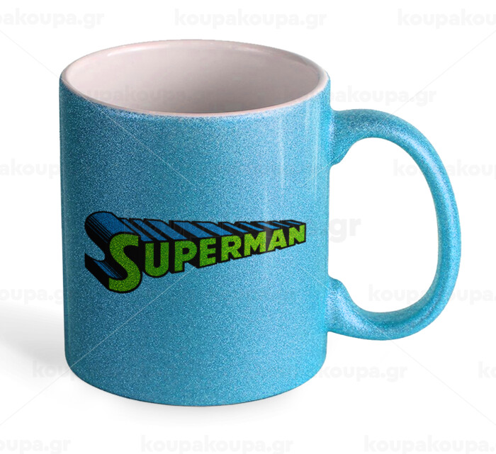 Superman vintage, Κούπα Σιέλ Glitter που γυαλίζει, κεραμική, 330ml