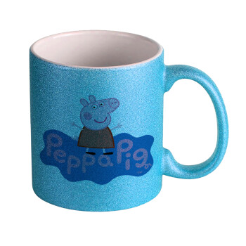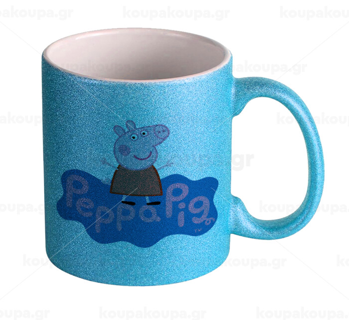 Πέππα το γουρουνάκι μπλε με όνομα, Κούπα Σιέλ Glitter που γυαλίζει, κεραμική, 330ml