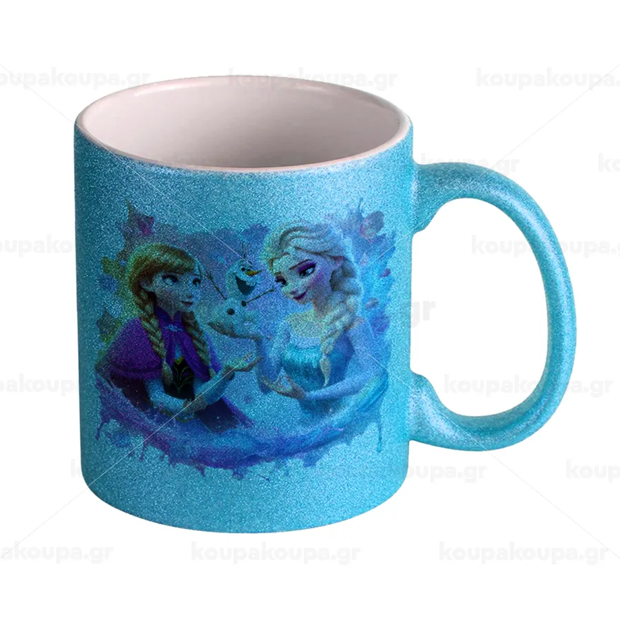 Έλσα & Άννα, Κούπα Σιέλ Glitter που γυαλίζει, κεραμική, 330ml