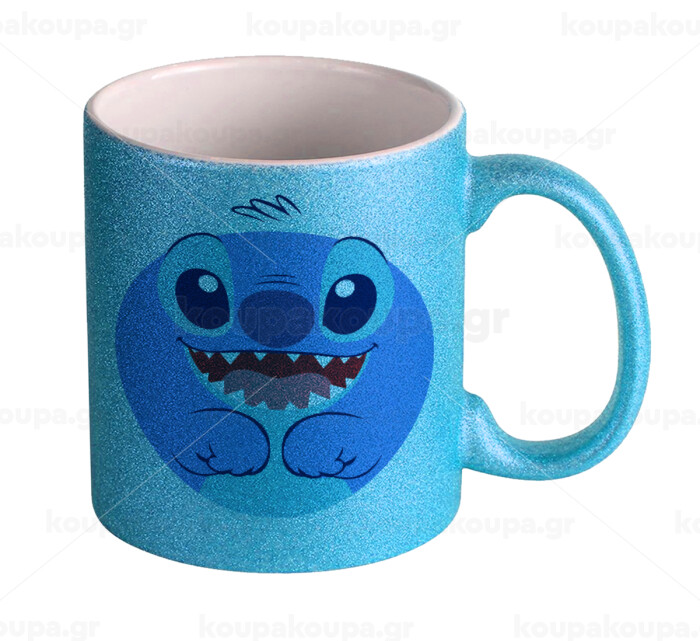Lilo & Stitch blue, Κούπα Σιέλ Glitter που γυαλίζει, κεραμική, 330ml