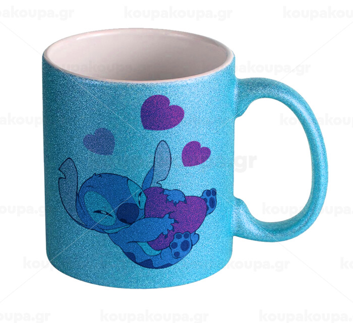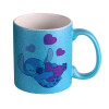 Lilo & Stitch hugs and hearts, Κούπα Σιέλ Glitter που γυαλίζει, κεραμική, 330ml