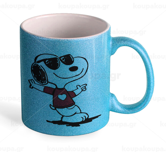 Snoopy καρδούλα, Κούπα Σιέλ Glitter που γυαλίζει, κεραμική, 330ml