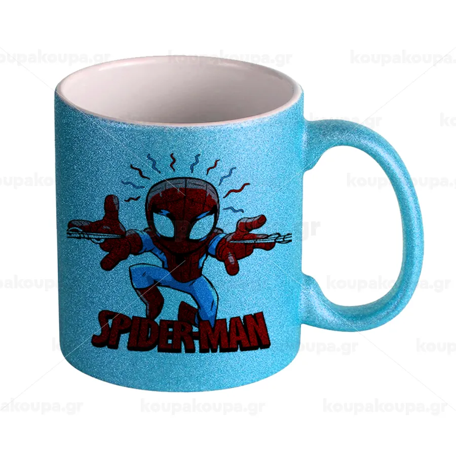 Spiderman flying, Κούπα Σιέλ Glitter που γυαλίζει, κεραμική, 330ml