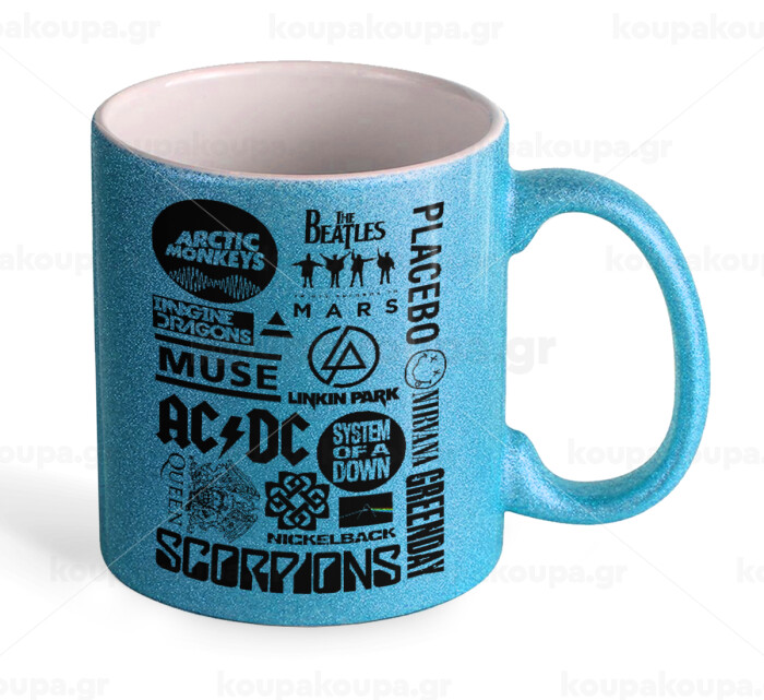 Best Rock Bands Collection, Κούπα Σιέλ Glitter που γυαλίζει, κεραμική, 330ml