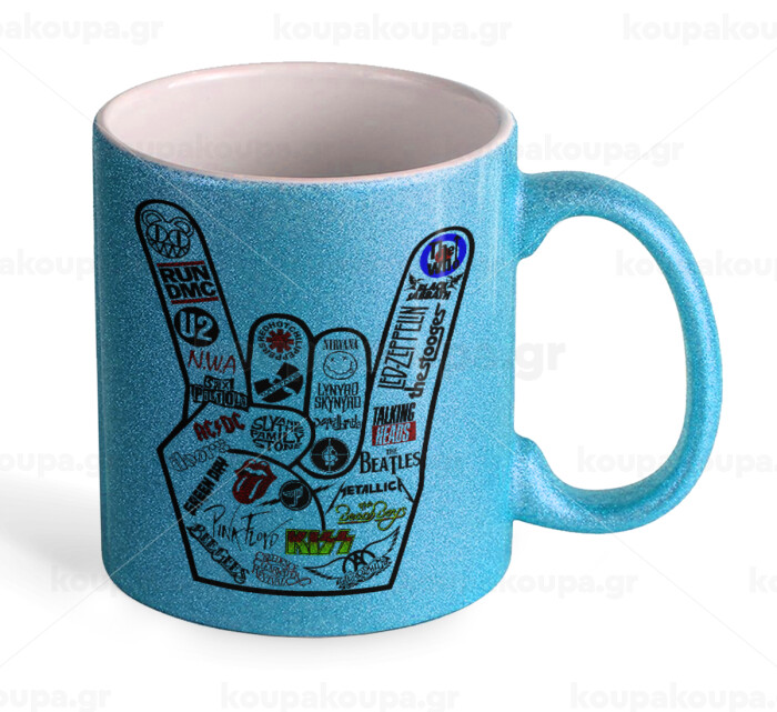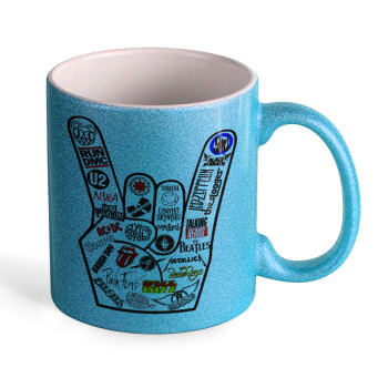 Best Rock Bands hand, Κούπα Σιέλ Glitter που γυαλίζει, κεραμική, 330ml