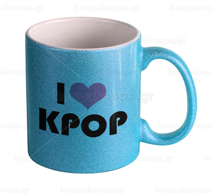 I Love KPOP, Κούπα Σιέλ Glitter που γυαλίζει, κεραμική, 330ml