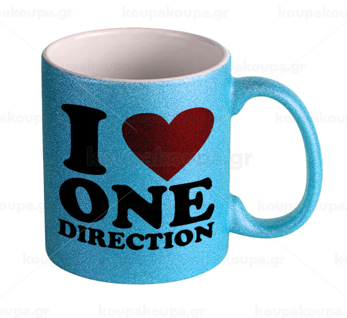 I Love, One Direction, Κούπα Σιέλ Glitter που γυαλίζει, κεραμική, 330ml