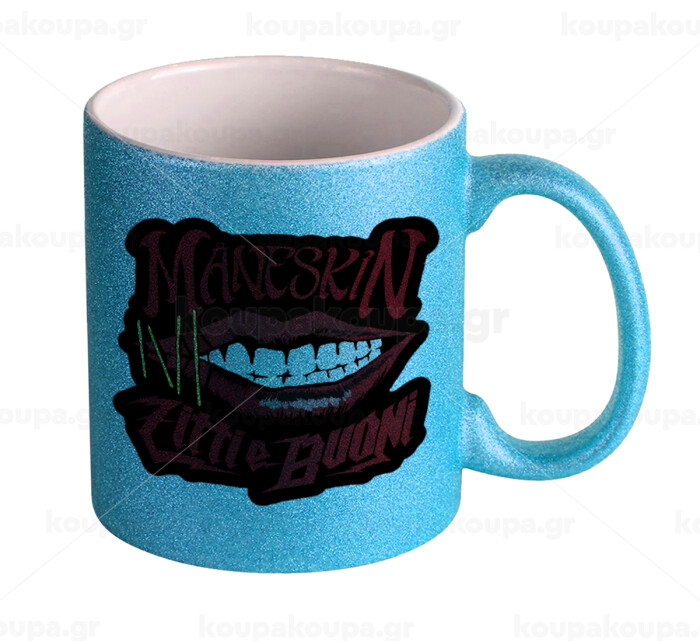 Maneskin lips, Κούπα Σιέλ Glitter που γυαλίζει, κεραμική, 330ml