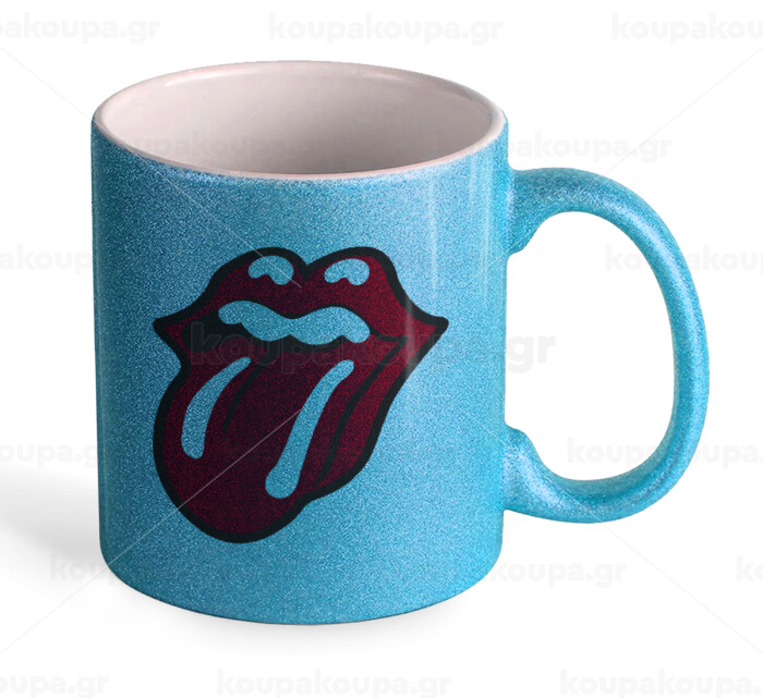 Rolling Stones Kiss, Κούπα Σιέλ Glitter που γυαλίζει, κεραμική, 330ml
