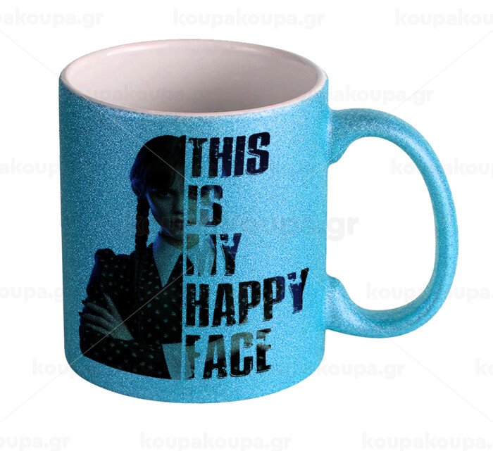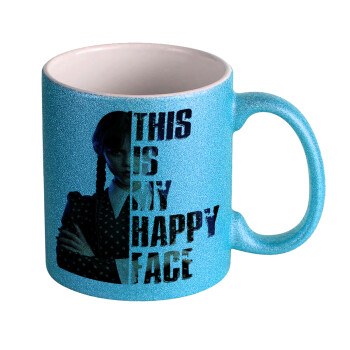 Wednesday, This is my happy face, Κούπα Σιέλ Glitter που γυαλίζει, κεραμική, 330ml