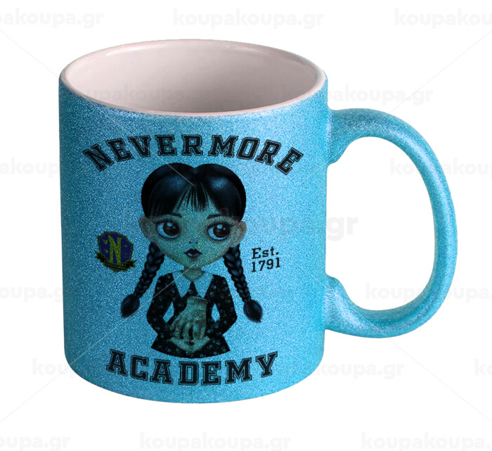 Wednesday Adams, nevermore, Κούπα Σιέλ Glitter που γυαλίζει, κεραμική, 330ml