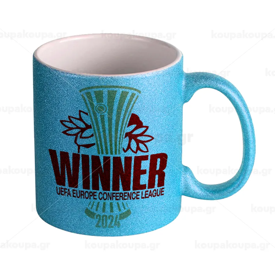 Europa Conference League WINNER, Κούπα Σιέλ Glitter που γυαλίζει, κεραμική, 330ml