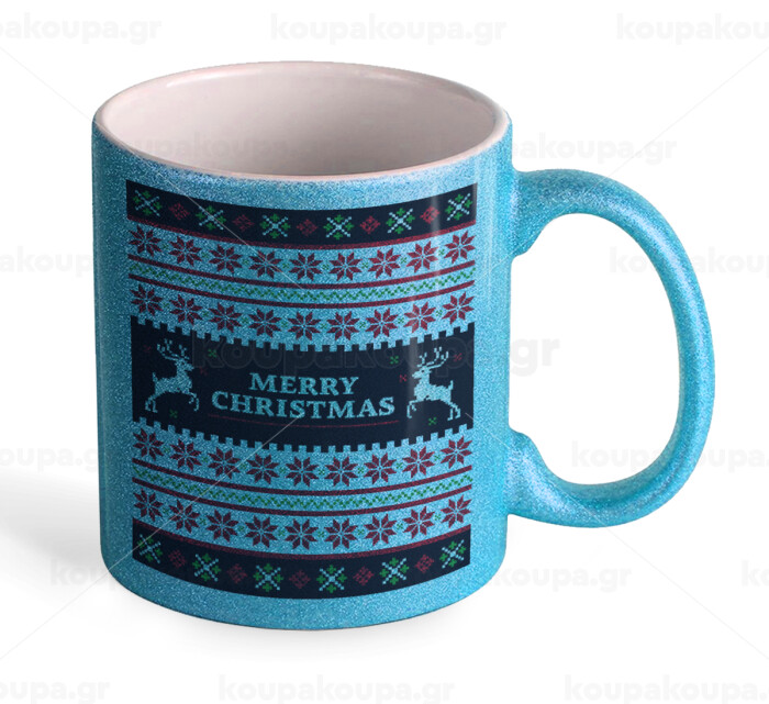 Merry Christmas Vintage, Κούπα Σιέλ Glitter που γυαλίζει, κεραμική, 330ml