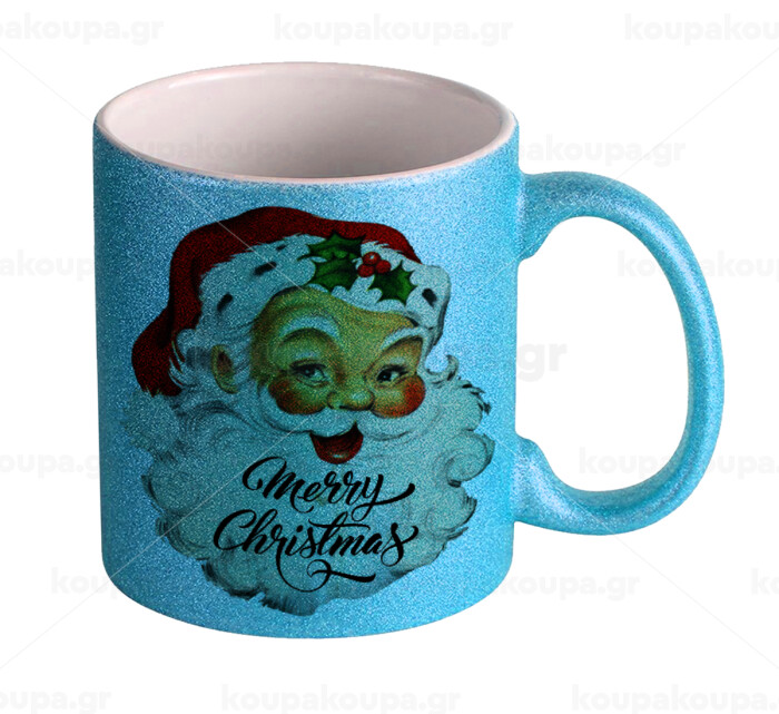 Santa vintage, Κούπα Σιέλ Glitter που γυαλίζει, κεραμική, 330ml