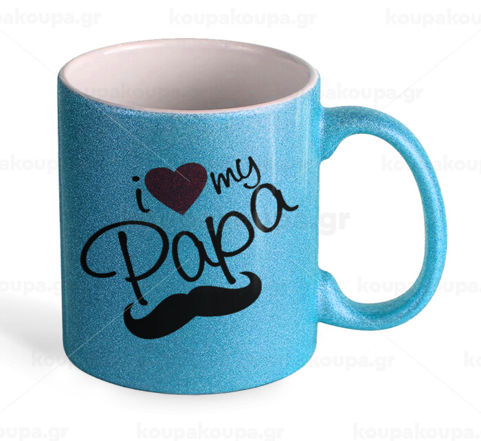 I Love my papa, Κούπα Σιέλ Glitter που γυαλίζει, κεραμική, 330ml