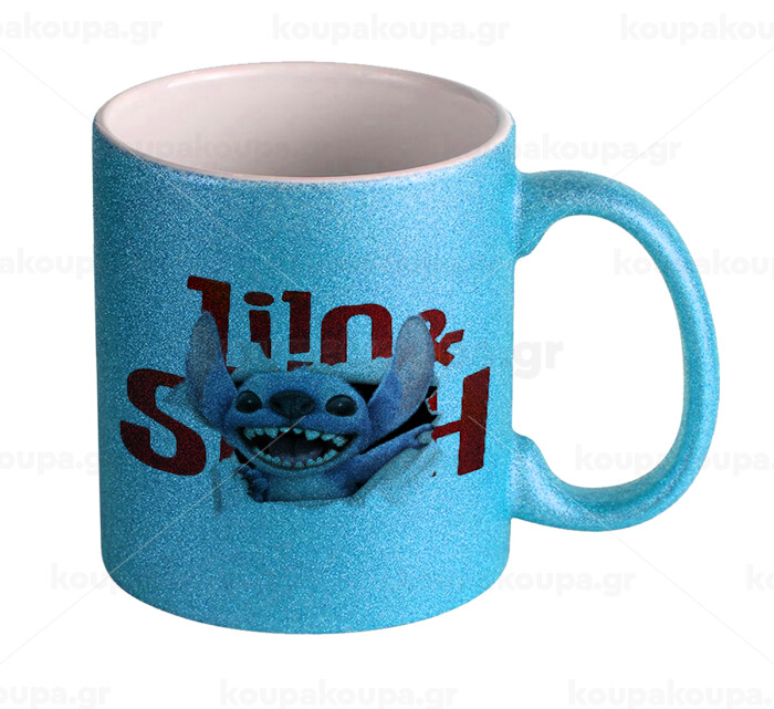 Stitch movie, Κούπα Σιέλ Glitter που γυαλίζει, κεραμική, 330ml