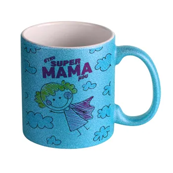 Στην SUPER μαμά μου, comic, Κούπα Σιέλ Glitter που γυαλίζει, κεραμική, 330ml