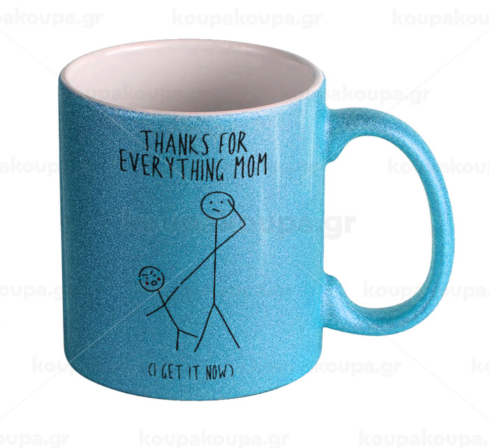 Thanks for everything mom, Κούπα Σιέλ Glitter που γυαλίζει, κεραμική, 330ml