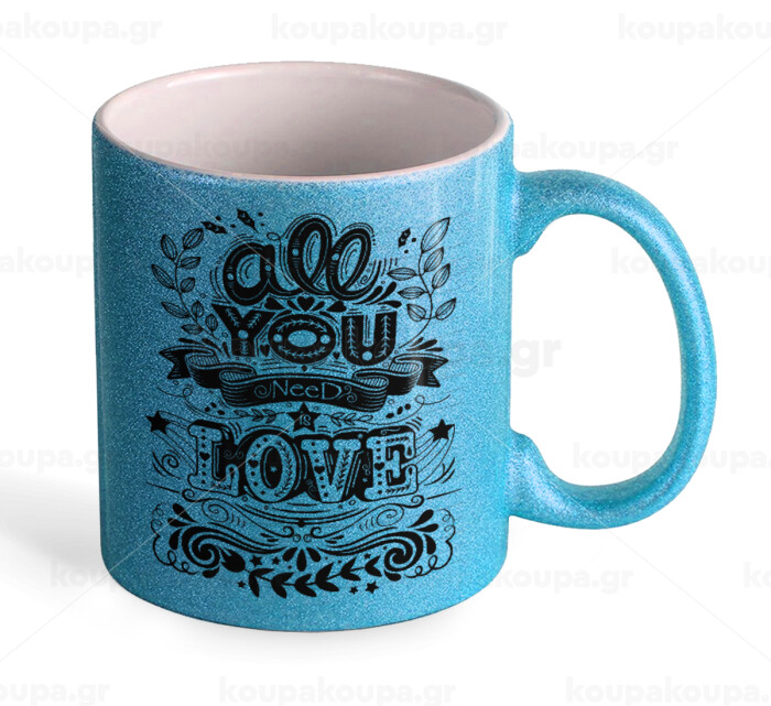 All you need is love, Κούπα Σιέλ Glitter που γυαλίζει, κεραμική, 330ml