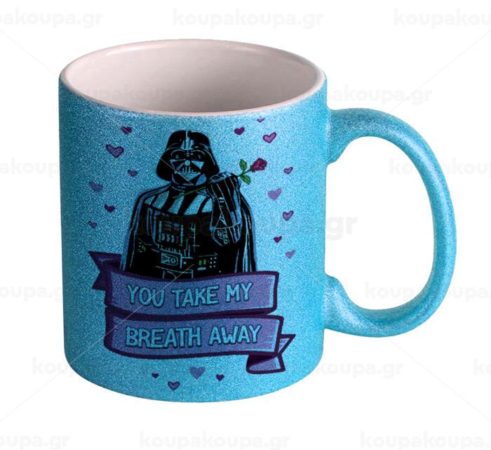 Darth Vader, you take my breath away, Κούπα Σιέλ Glitter που γυαλίζει, κεραμική, 330ml