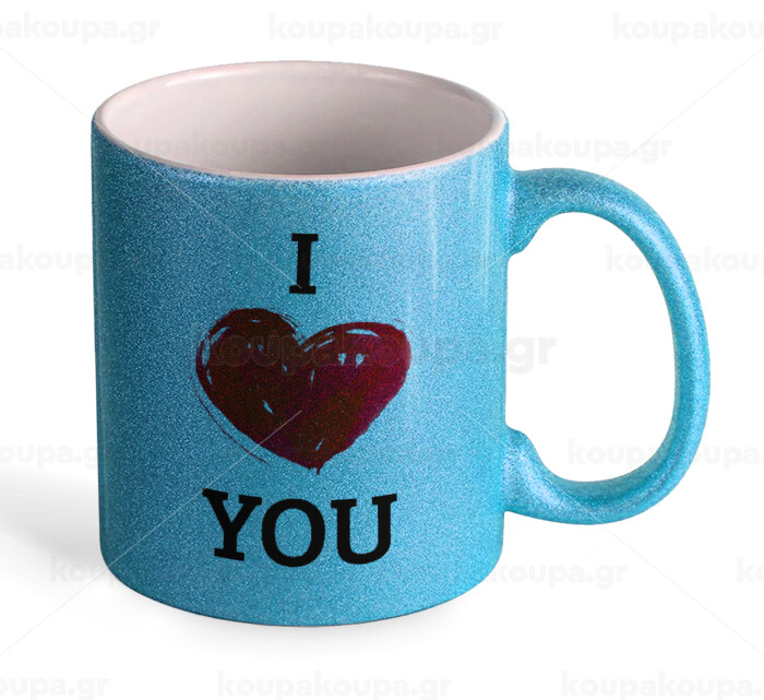 I Love You, Κούπα Σιέλ Glitter που γυαλίζει, κεραμική, 330ml