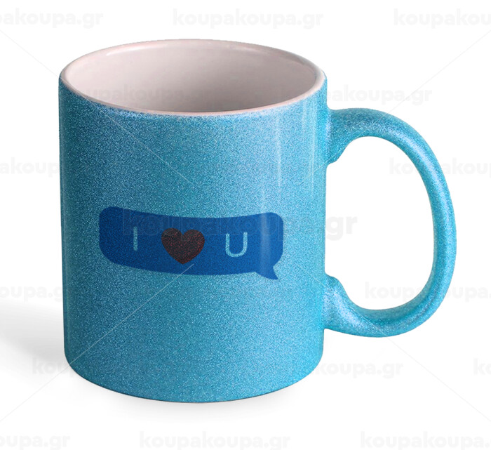 I Love You text message, Κούπα Σιέλ Glitter που γυαλίζει, κεραμική, 330ml
