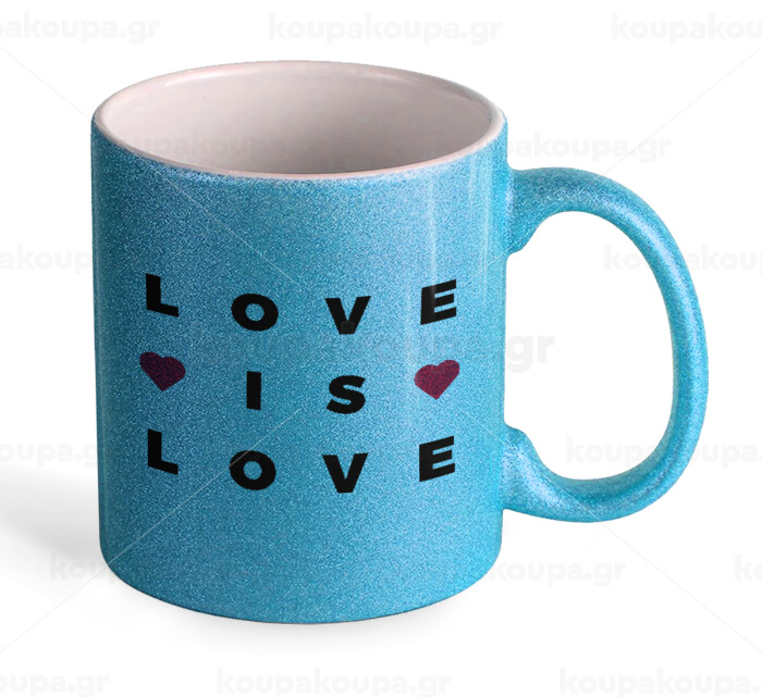 Love is Love, Κούπα Σιέλ Glitter που γυαλίζει, κεραμική, 330ml