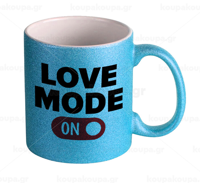 LOVE MODE ON, Κούπα Σιέλ Glitter που γυαλίζει, κεραμική, 330ml