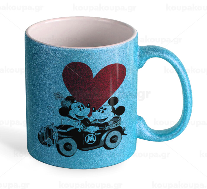 Mickey & Minnie love car, Κούπα Σιέλ Glitter που γυαλίζει, κεραμική, 330ml