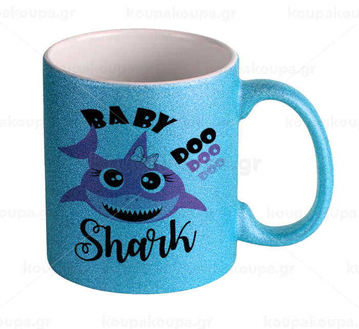 Baby Shark (girl), Κούπα Σιέλ Glitter που γυαλίζει, κεραμική, 330ml