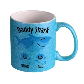 Daddy Shark (με ονόματα παιδικά), Κούπα Σιέλ Glitter που γυαλίζει, κεραμική, 330ml