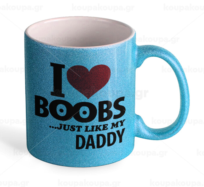 I Love boobs ...just like my daddy, Κούπα Σιέλ Glitter που γυαλίζει, κεραμική, 330ml
