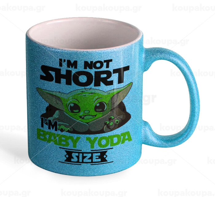 I'm not short, i'm Baby Yoda size, Κούπα Σιέλ Glitter που γυαλίζει, κεραμική, 330ml