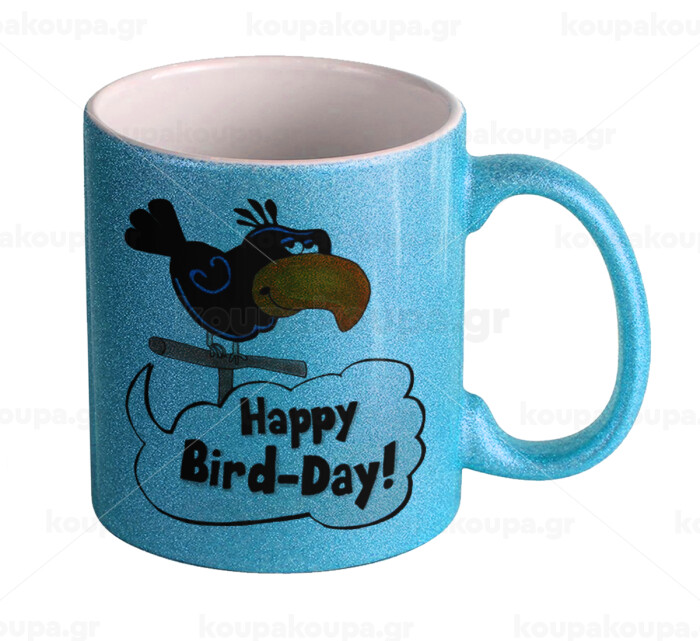 Happy Bird Day, Κούπα Σιέλ Glitter που γυαλίζει, κεραμική, 330ml