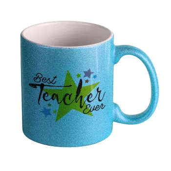 Teacher super star!!!, Κούπα Σιέλ Glitter που γυαλίζει, κεραμική, 330ml