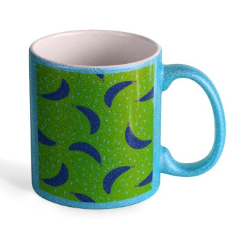Yellow seamless with blue bananas, Κούπα Σιέλ Glitter που γυαλίζει, κεραμική, 330ml