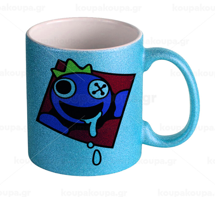 Blue, Rainbow friends, Κούπα Σιέλ Glitter που γυαλίζει, κεραμική, 330ml
