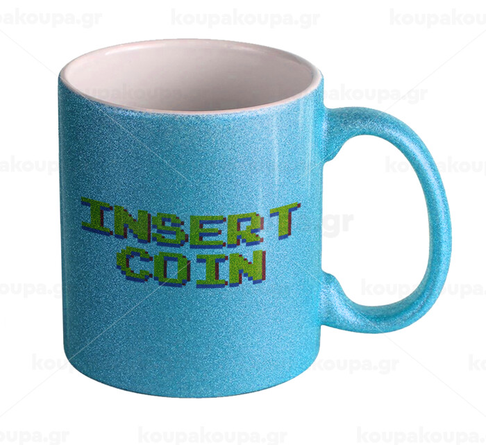 Insert coin!!!, Κούπα Σιέλ Glitter που γυαλίζει, κεραμική, 330ml