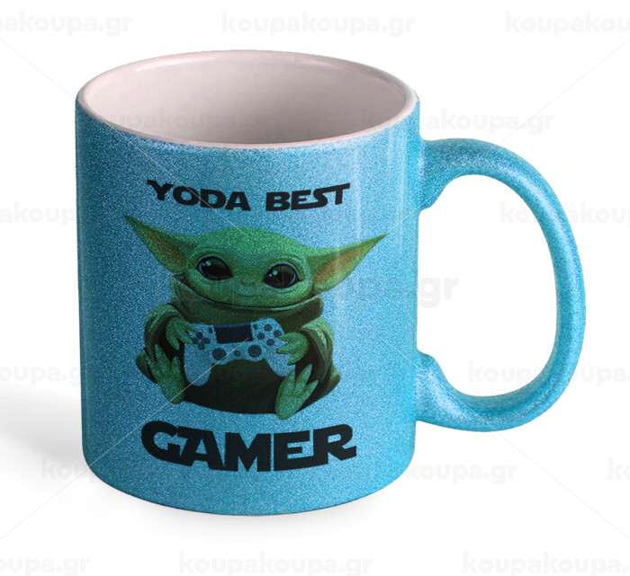 Yoda Best Gamer, Κούπα Σιέλ Glitter που γυαλίζει, κεραμική, 330ml