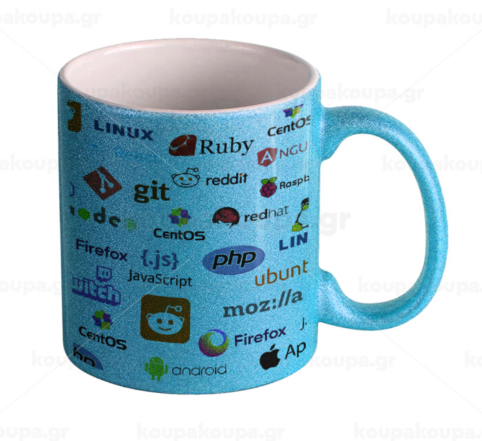 Tech logos, Κούπα Σιέλ Glitter που γυαλίζει, κεραμική, 330ml