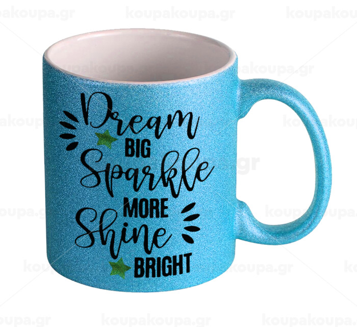 Dream big, Sparkle more, Shine bright, Κούπα Σιέλ Glitter που γυαλίζει, κεραμική, 330ml