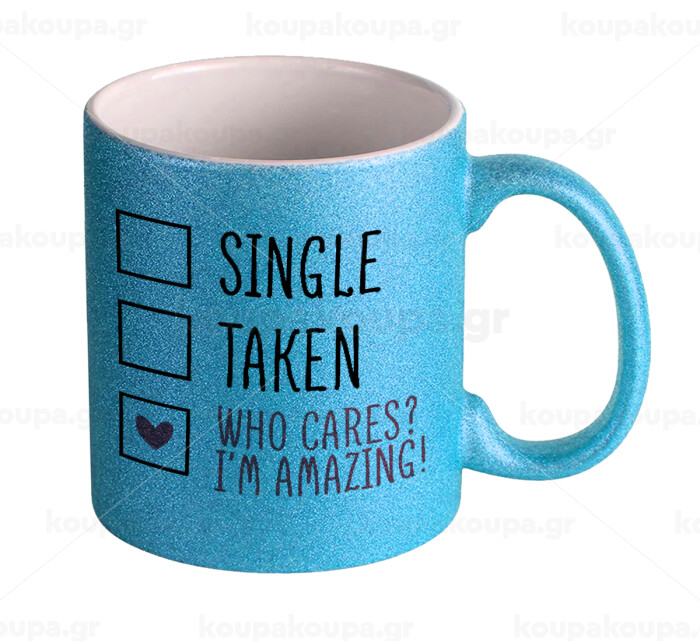Single, Taken, Who cares i'm amazing, Κούπα Σιέλ Glitter που γυαλίζει, κεραμική, 330ml