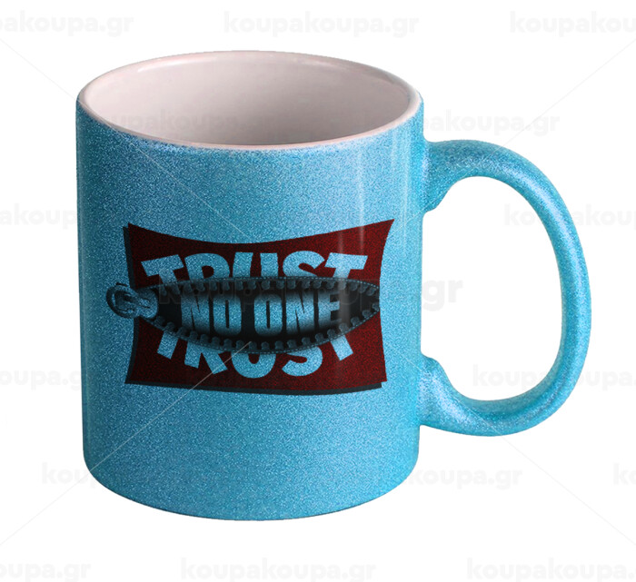 Trust no one... (zipper), Κούπα Σιέλ Glitter που γυαλίζει, κεραμική, 330ml